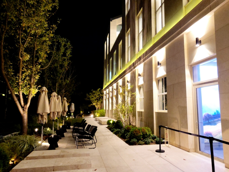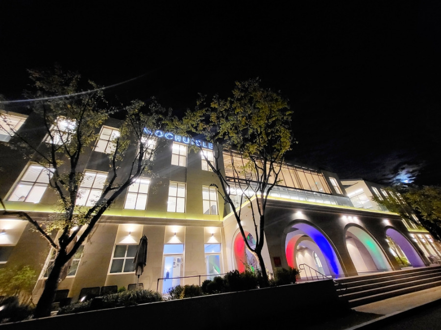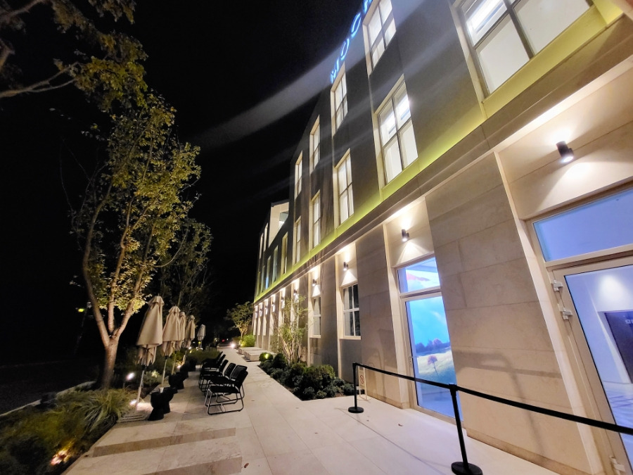 까만밤하늘과 환한 조명의 모크슈라건물이~!