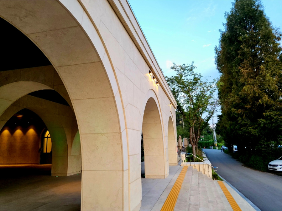 들어가는길에 보이던 건물과 하늘이 너무 이뻤어요.