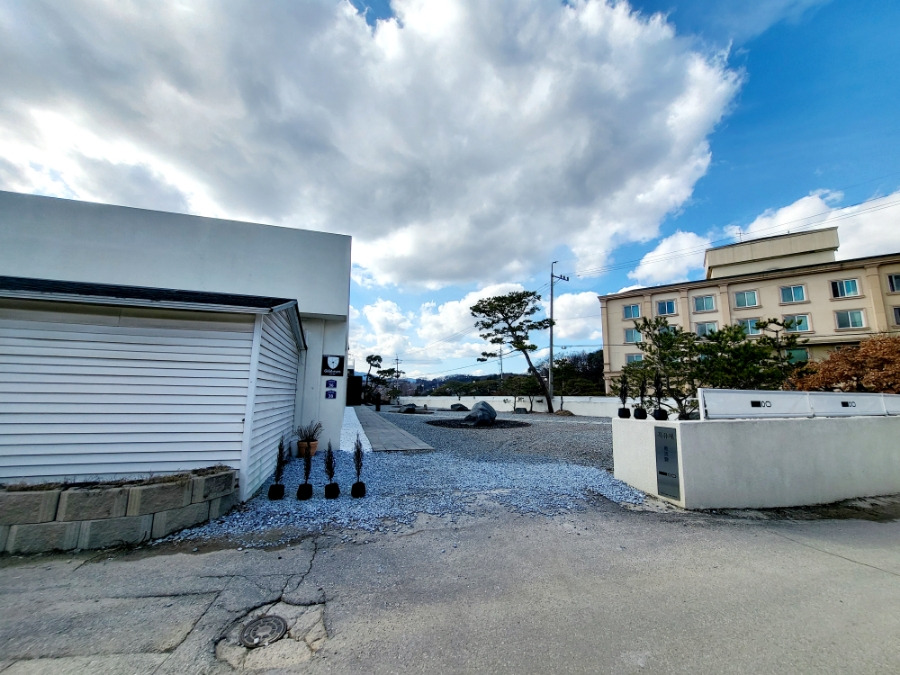 작은 돌이 깔려있는 마당도 넓게 탁 트여 있어서 좋고 멀리 보이는 산도 시원한 느낌이었어요.