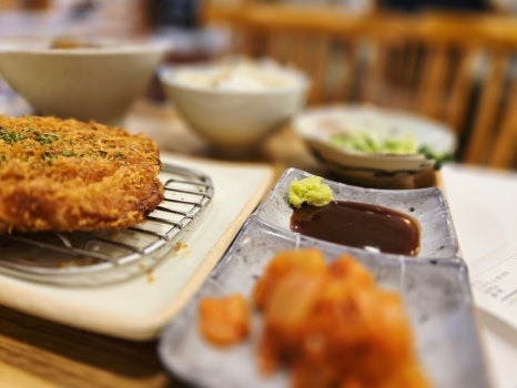 이곳의 돈카츠는 '겉바속촉'의 정석을 보여줍니다. 두께가 아주 두꺼운 편은 아니지만, 황금빛으로 바싹 튀겨내어 씹는 순간 경쾌한 소리와 함께 바삭함이 터져 나옵니다. 함께 나오는 돈카츠 소스도 넉넉해서 푹 찍어 먹기 좋습니다.