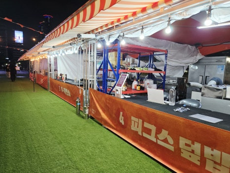 특히 밤에 오면 알록달록 조명이랑 서울 불빛이 어우러져 분위기 최고! 포장마차 느낌 그대로인데 트렌디함까지 듬뿍! 외국인들도 종종 보였고, 서로 인증샷 찍어주며 소소하게 친해지는 재미도 꿀팁이에요. 인기 시간대엔 대기가 조금 있지만, 크게 오래 기다린 적은 없어요. 내부도 꽤 넓고, 편의시설도 빵빵하게 준비돼 있어서 장시간 머물기에도 전혀 부담 없었답니다.