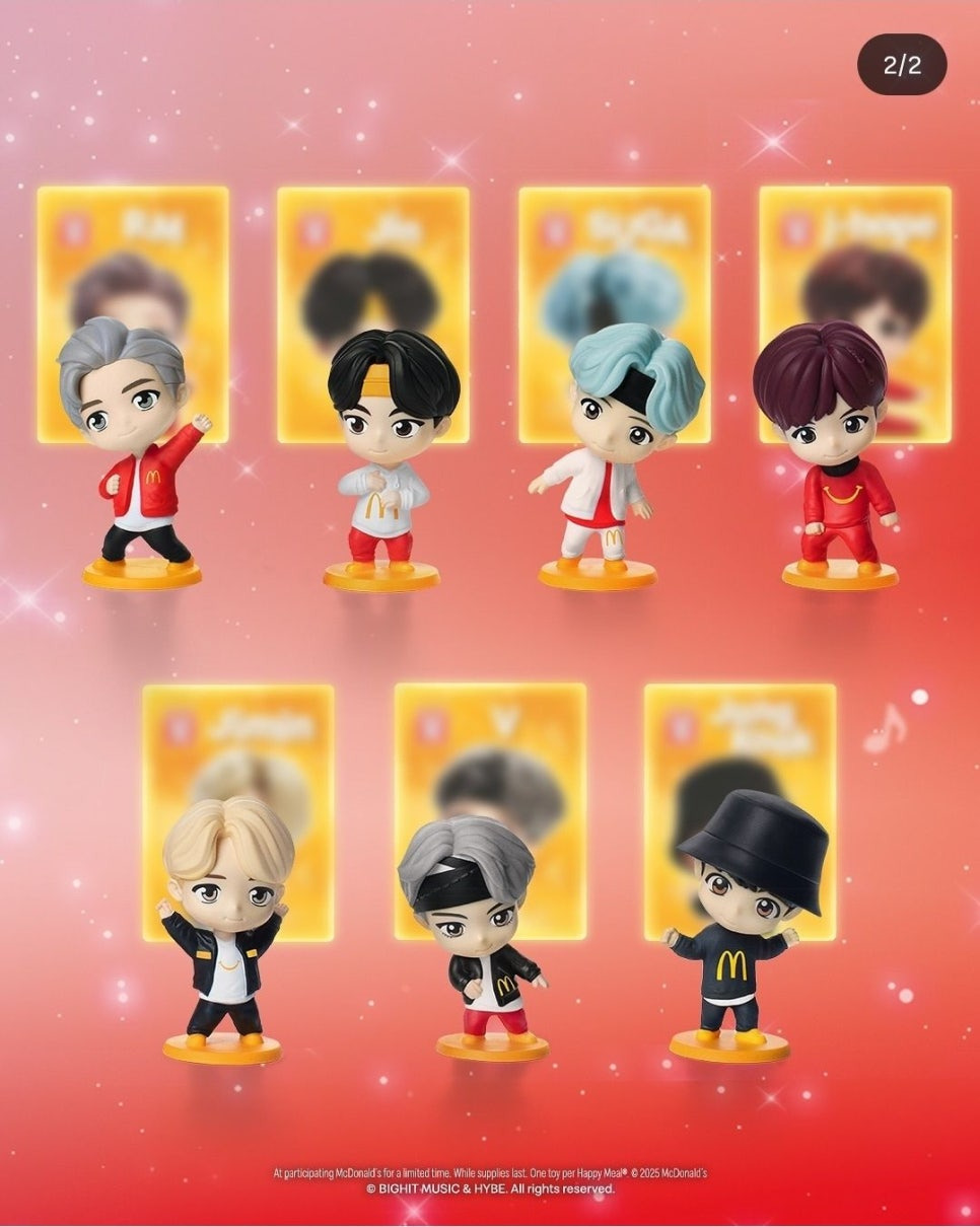 맥도날드와 BTS의 첫 콜라보였던 2021년 '더 BTS 세트'도 전 세계적으로 어마어마한 인기를 끌었죠. 그래서인지 이번 협업 소식에는 팬들이 기대를 잔뜩 모으는 분위기예요. 공식 SNS에서 공개된 티저 이미지 속 해피밀 박스에 올라탄 일곱 타이니탄 캐릭터들은 그냥 보는 것만으로도 흐뭇함이 마구 솟구쳐요🤗.
