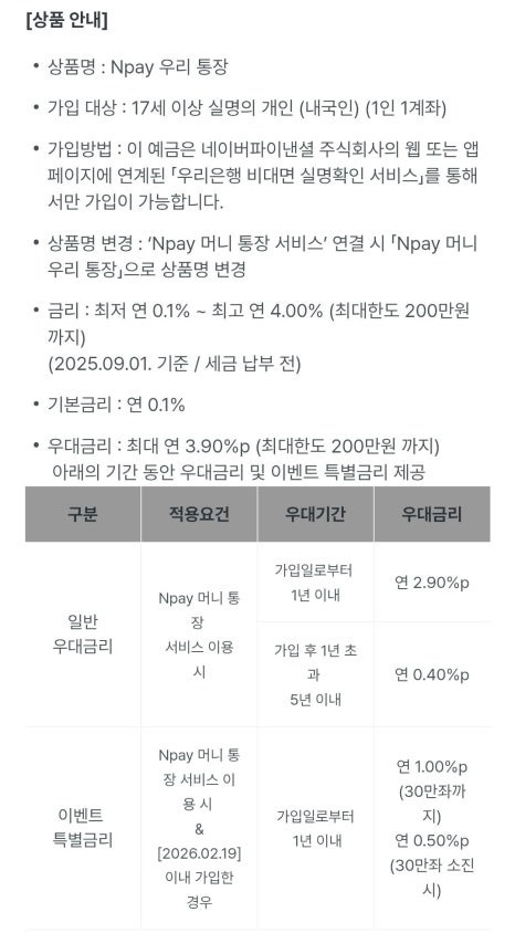 Npay 우리통장 총정리표