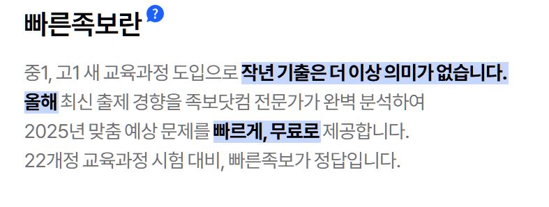 그래서 오늘은 전국에서 가장 빠르게, 그리고 무료로 22개정 교육과정을 반영한 맞춤 예상문제를 제공하는 족보닷컴의 ‘빠른족보’를 소개하려 해요! 🎉