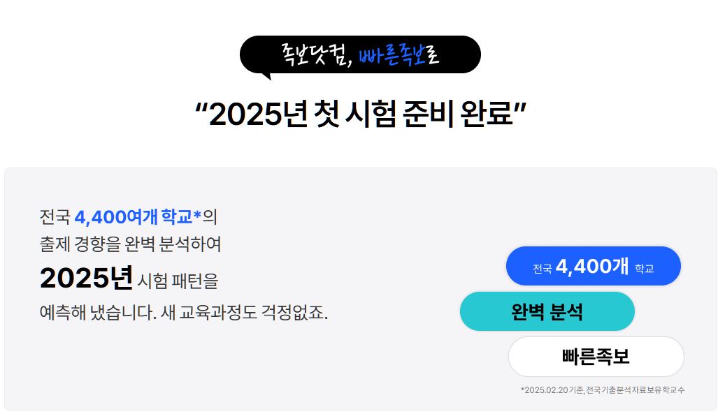 족보닷컴 ‘빠른족보’는 개정 교육과정을 완벽히 반영, 최신 출제 경향을 분석한 예상문제를 제공하며,