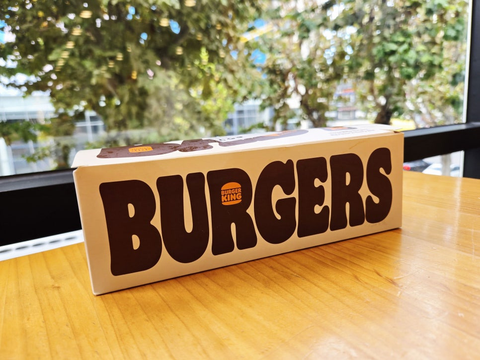 상자 열어보니 세 가지 버거가 딱 가지런히 들어있는데