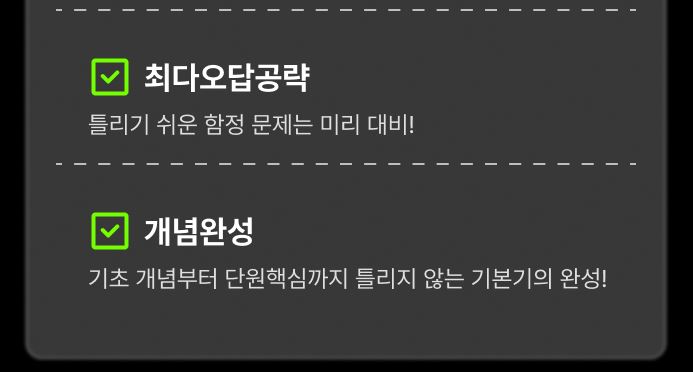 ◦ 최다오답공략, 최다빈출 등 점수에 직결되는 핵심 자료만 효율적으로 볼 수 있으니 단기 성적 향상에 도움이 됩니다.