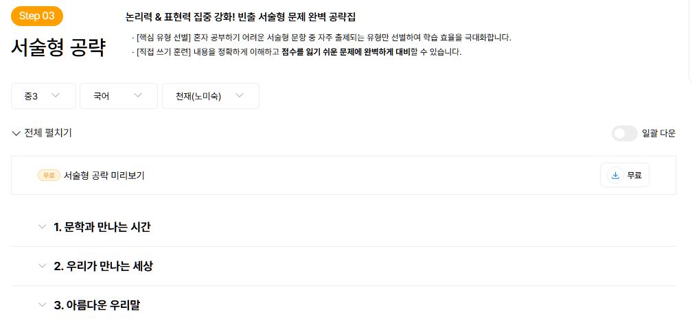 3️⃣ 중학생 시험대비에 맞는 단계별 학습 구조