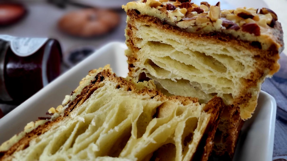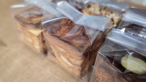코메코 베이커리의 코메큐브는 페스츄리와 식빵을 합친 듯한 독특한 모양과 결이 살아있는 식감으로 많은 사람들에게 사랑받고 있습니다